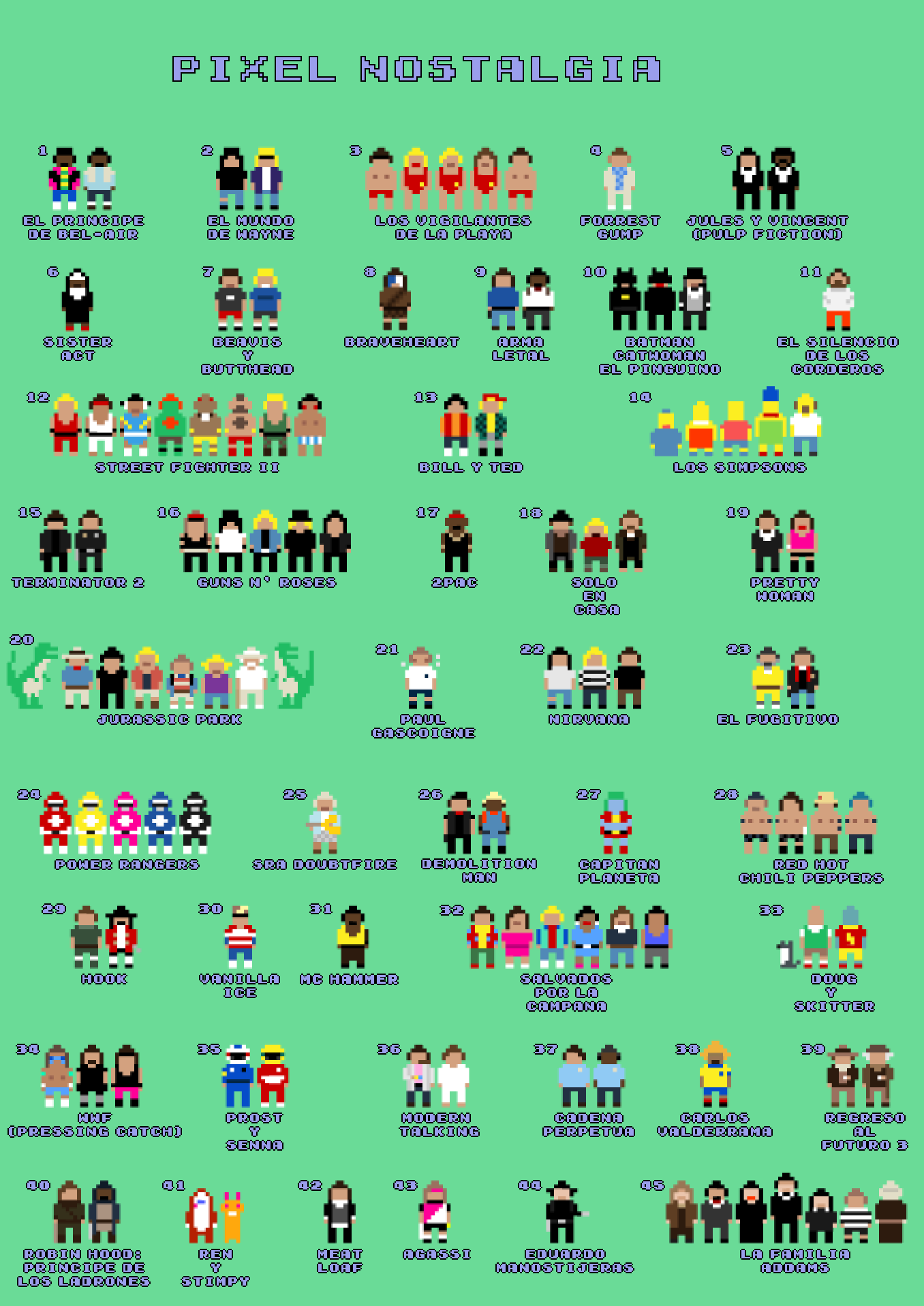 Creo que esta imagen se corresponde con personajes de los 90s, mientras que la del juego de la semana pasada eran de los 80s. Vale, eso debería ser una buena pista