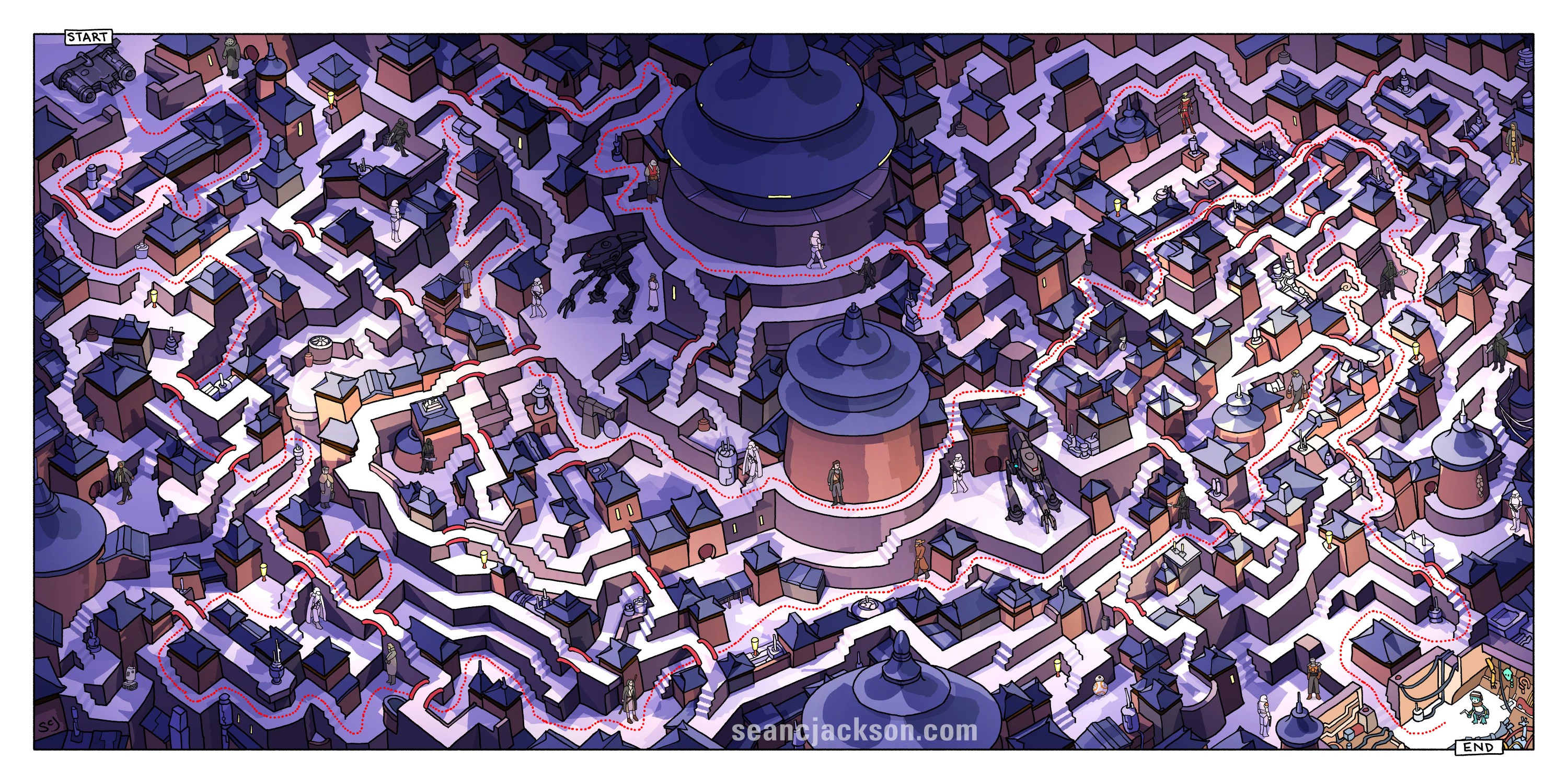 Pincha en los androides que no estás buscando (o aquí) para ver el juego a tamaño completo.