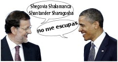 • Obama visitó España. Silbamos todos la tonadilla de Bienvenido Mr. Marshall. Rajoy no porque si silba le escupe en la cara al pobre Obama :D